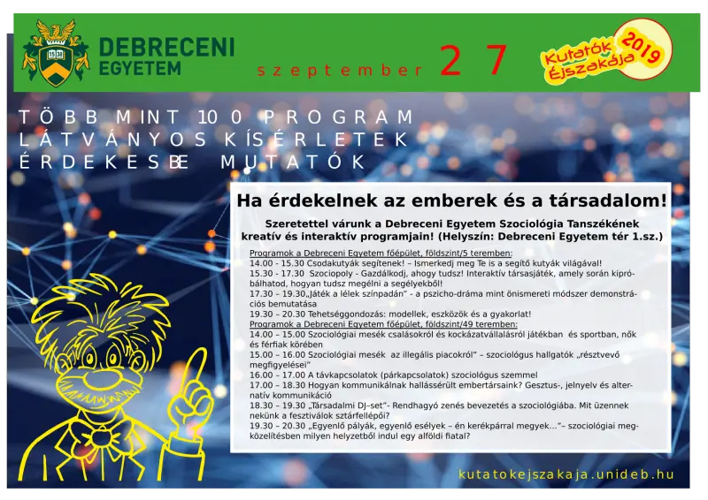 Kutatók Éjszakája 2019 | Szociológiai és Szociálpolitikai Tanszék